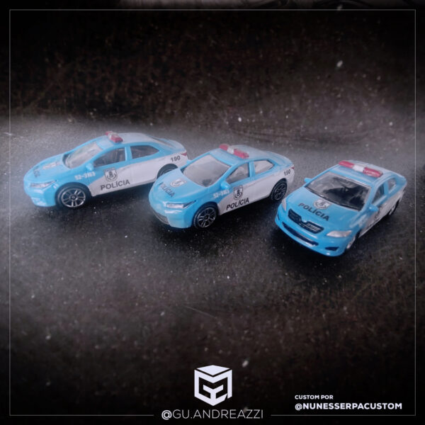 Desenhado em cima de um modelo Cadillac Escalade da Hot Wheels, este decalque replica todos os elementos do carro de serviço da Polícia Militar do Estado do Rio de Janeiro.