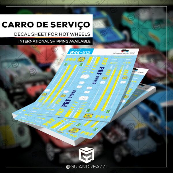 Desenhado em cima de um modelo Nissan Patrol da Hot Wheels, este decalque replica todos os elementos do carro de serviço da Polícia Rodoviária Federal.